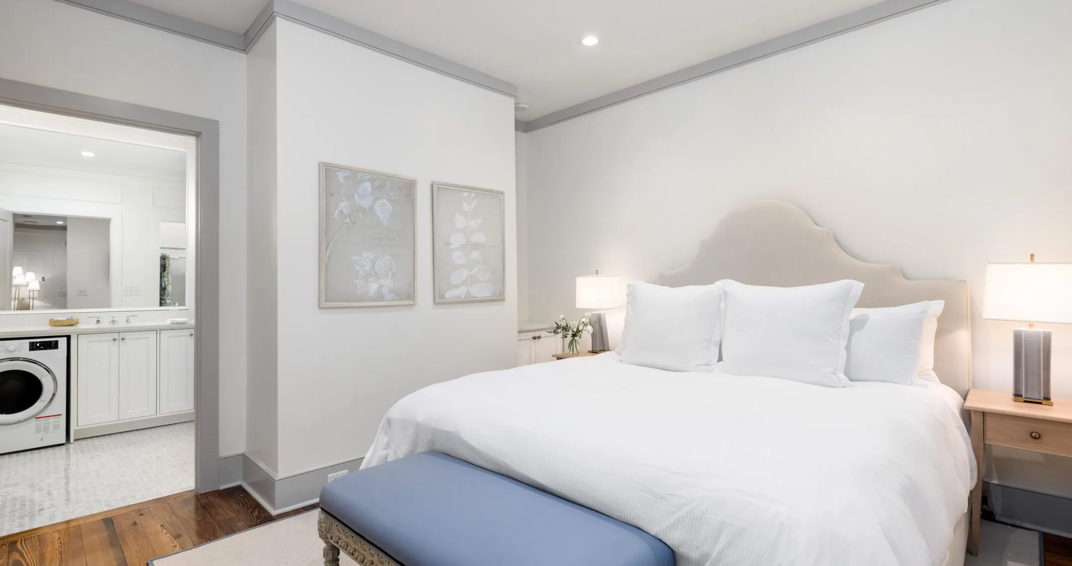 Step into a home-away-from-home that’s all yours. Our One-Bedroom Residence guest rooms are nestled within beautifully restored houses, adjoining our property through the charming Oyster Garden. Thoughtfully appointed, these rooms feature custom-designed furnishings and King bedding. Historic architectural details, including heart pine floors, soaring ceilings, and period millwork, imbue the space with timeless charm. The European-style bathroom, complete with a hand-laid marble and tile shower, marble countertops, and a handcrafted armoire, offers understated elegance.